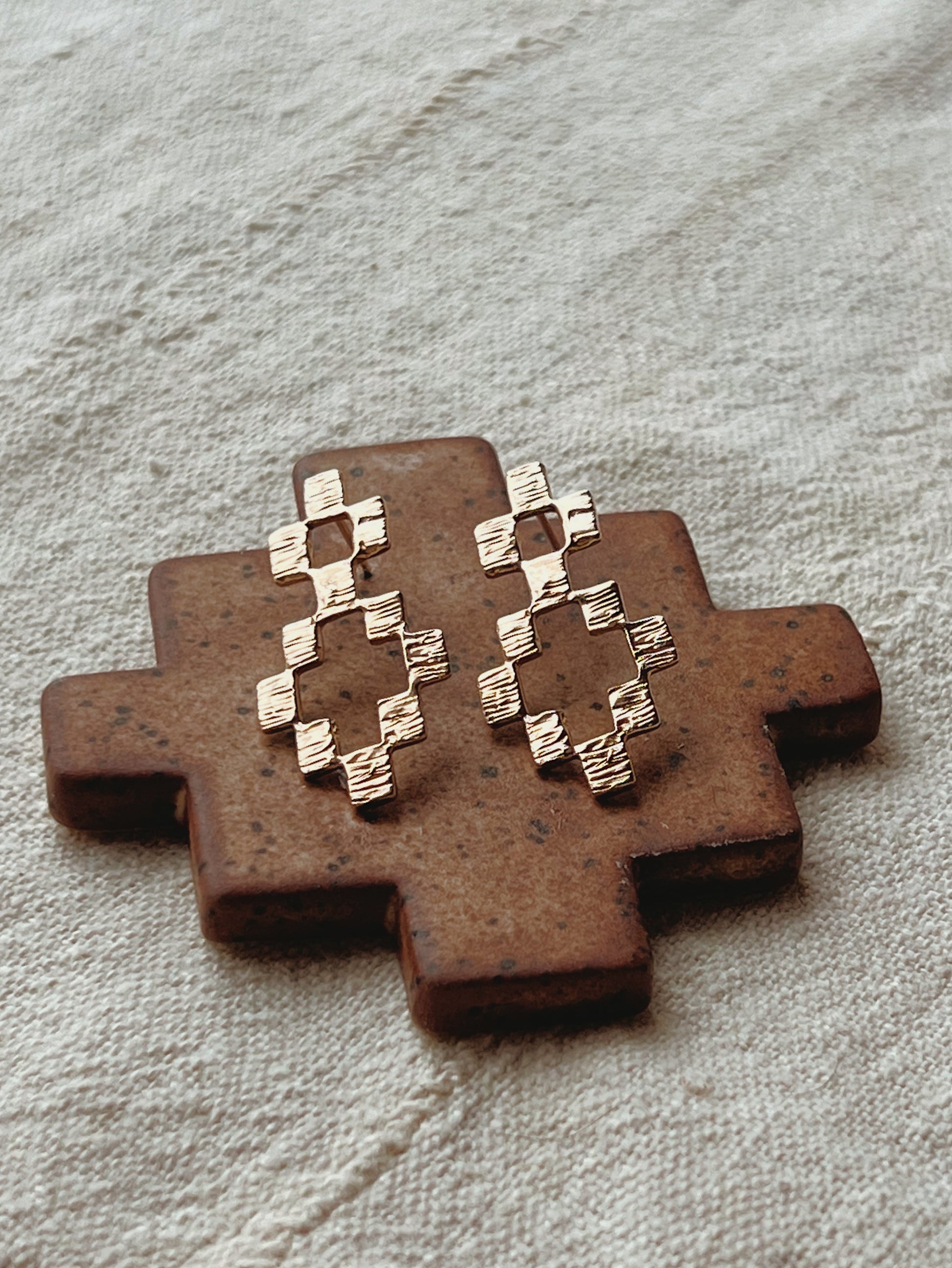 Beautifully textured, lightweight pair of statement earrings featuring one of our favourite shapes that is ever present throughout our work- the Incan cross or Chakana